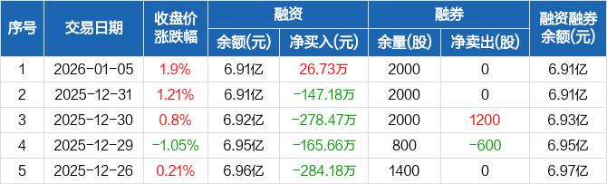 达梦数据:融资净买入26.73万元,融资余额6.91亿元(01-05)