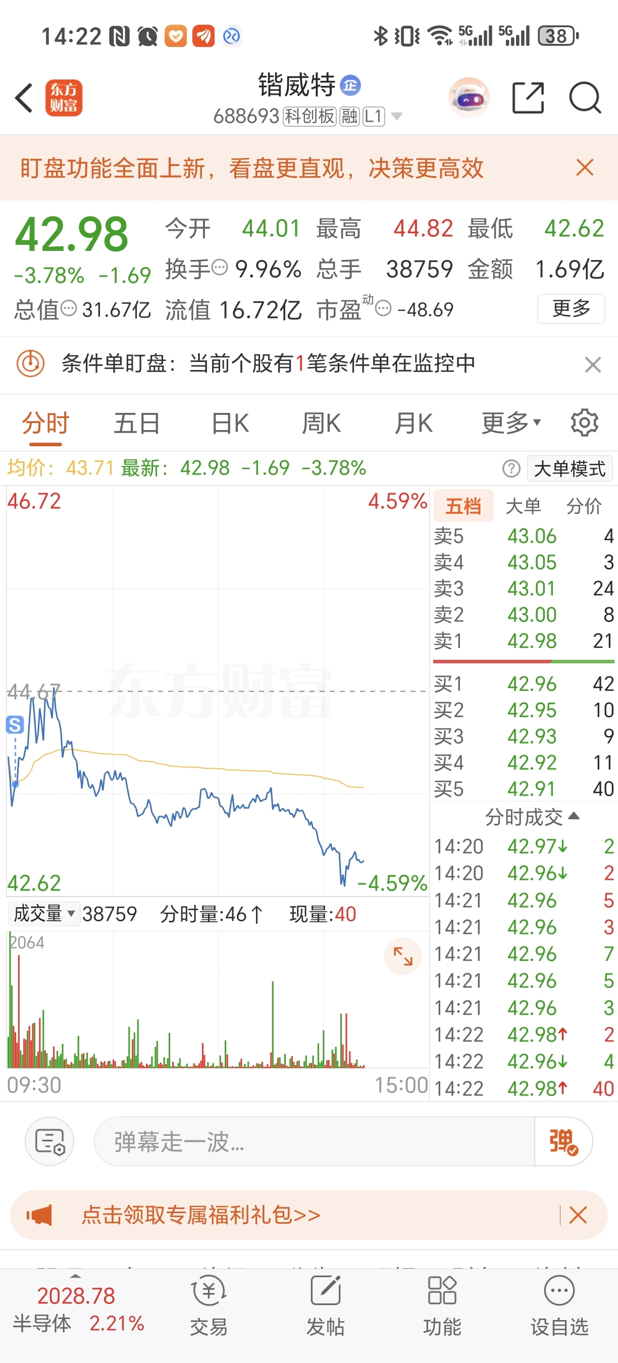 $锴威特(SH688693)$ 清仓了,以后会涨,一般都是这样的
