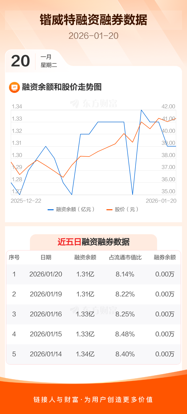 交易所最新数据显示,锴威特于2026年1月20日获融资买入836.03万元,融资偿还880.78万元,当日融资净偿还44.75万元。目前,该股融资余额1.31亿,占流通市值比例为8.14%。