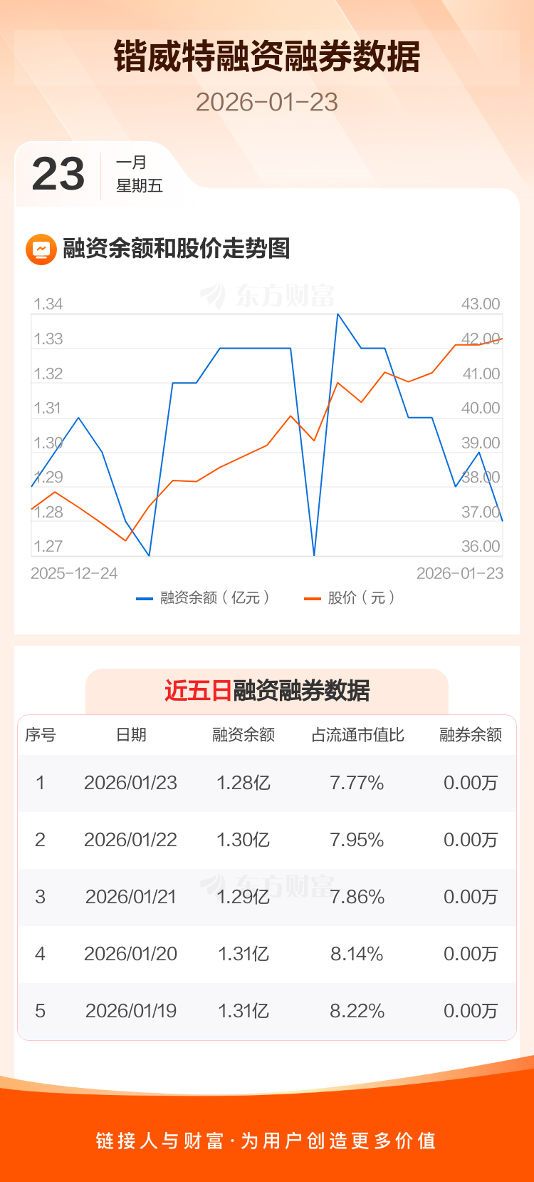 交易所最新数据显示,锴威特于2026年1月23日获融资买入548.77万元,融资偿还795.46万元,当日融资净偿还246.69万元。目前,该股融资余额1.28亿,占流通市值比例为7.77%。
