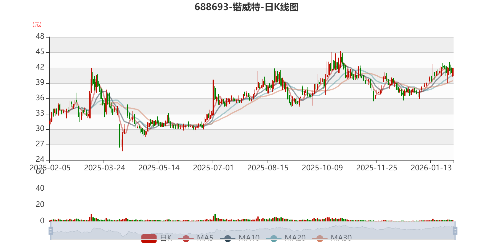 中证智能财讯锴威特(688693)1月30日晚间披露2025年度业绩预告,预计2025年归母净利润亏损6800万元至9600万元,上年同期亏损9718.93万元;扣非净利润亏损7800万元至1.06亿元,上年同期亏损1.08亿元。以最新收盘价计算,市净率(LF)约3.69倍,市销率(TTM)约13.85倍。