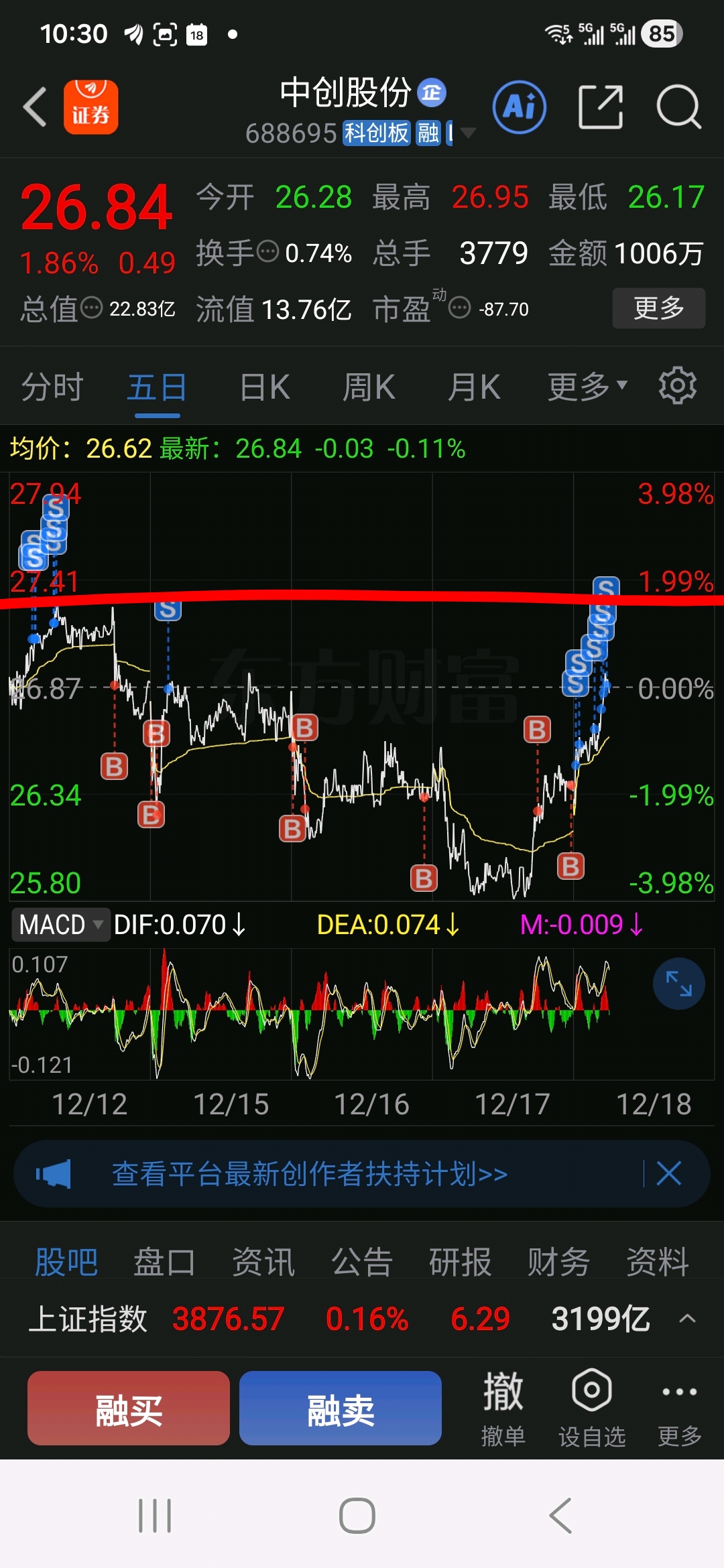 一不留神,今天把中创全部卖空了,明天又要从2670从头再来了,一日复一日,日日不