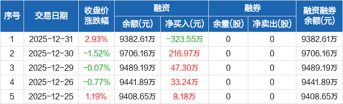 中创股份:融资净偿还323.55万元,融资余额9382.61万元(12-31)