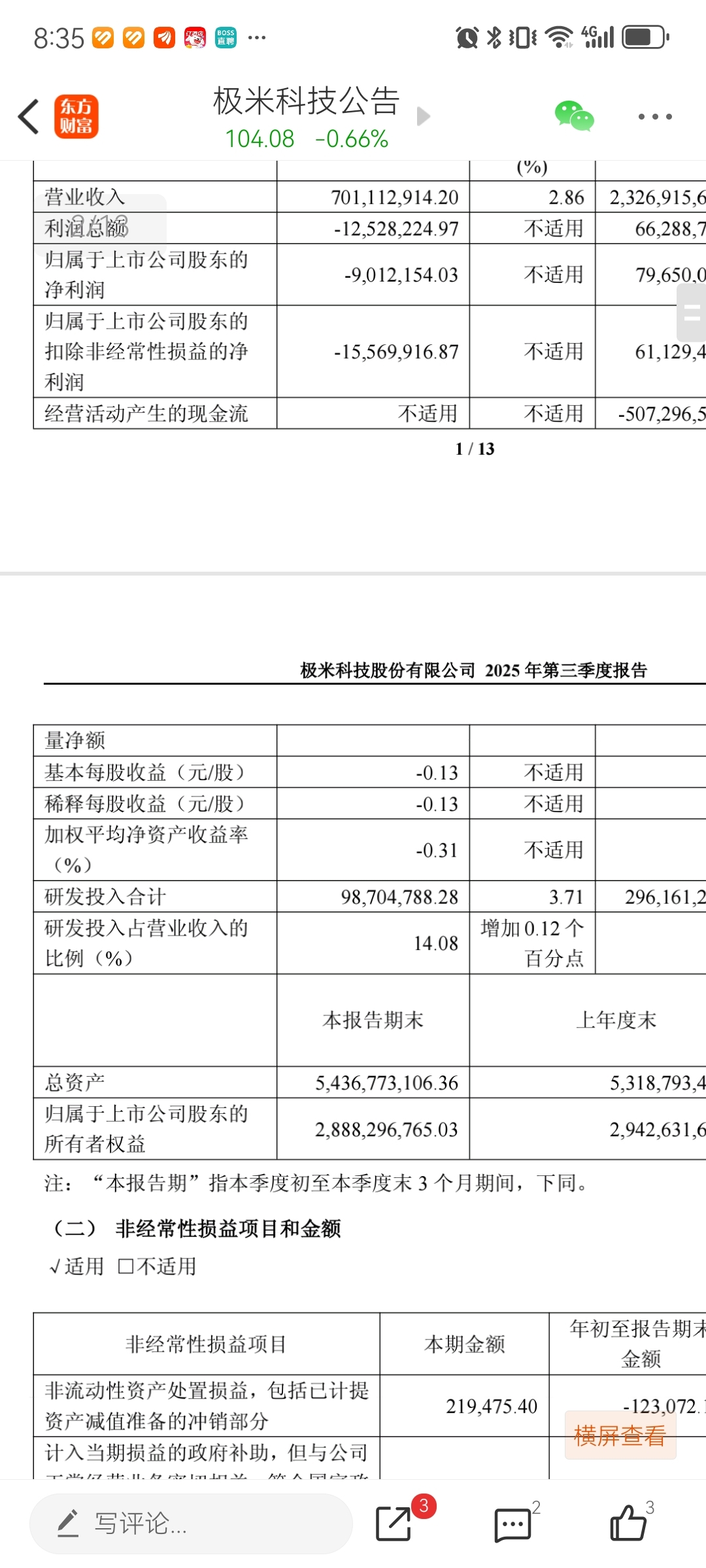 $极米科技(SH688696)$ 风评差,口碑差,第三季度财务报告显示股票每股收益是负数,请谨慎投资。