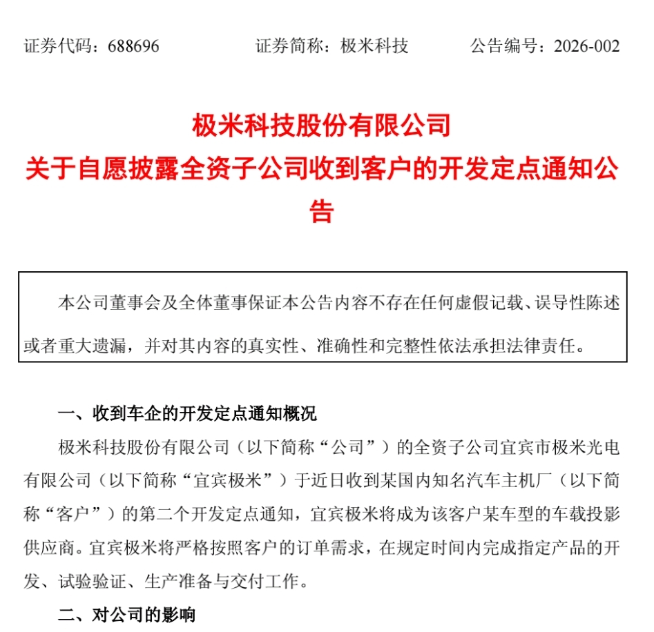$极米科技(SH688696)$ 极米科技上半年净利润同比增长2062%,车载产品上车尊界等多款车型8月28日,极米科技(688696.SH)公告称,公司上半年实现营业收入16.26亿元,同比增长1.63%;归属于上市公司股东的净利润8866.22万元,同比增长2062.34%。报告期内,公司部分车载产品已交付上车,问界M8、问界M9、尊界S800、享界S9等多款车型已搭载公司车内后排投影产品。截至2025年6月30日,公司已拥有专利1219项,其中发明专利418项、实用新型专利539项、外观设计专利262项、计算机软件著作权71项。本报告期,公司新申请专利70项,其中发明专利50项。2025年上半年,公司持续创新、优化产品矩阵,推出了便携投影Play 6、家用旗舰RS 20系列、轻薄投影Z6X Pro三色激光版等新品,进一步夯实入门级DLP投影份额优势,同时完善中高端激光投影产品矩阵,提升高端投影性能;海外市场方面,公司继续坚定实施品牌出海与全球化业务布局,公司产品已进入欧洲、北美、日本、澳洲等区域主要线下渠道,未来将基于已有渠道的积累,加强产品及品牌出海精细化运营,提升极米产品在海外消费者心中的认知度;公司不断拓展技术与产品的应用场景,布局车载投影新业务,已获得了多个车载业务定点,涵盖智能座舱、智能大灯领域。