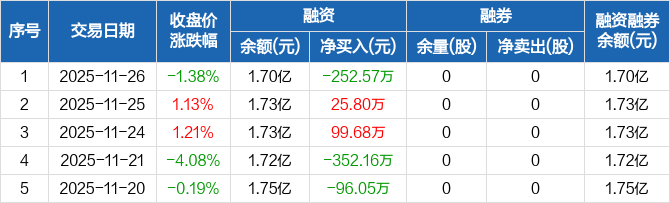 纽威数控:融资净偿还252.57万元,融资余额1.7亿元(11-26)
