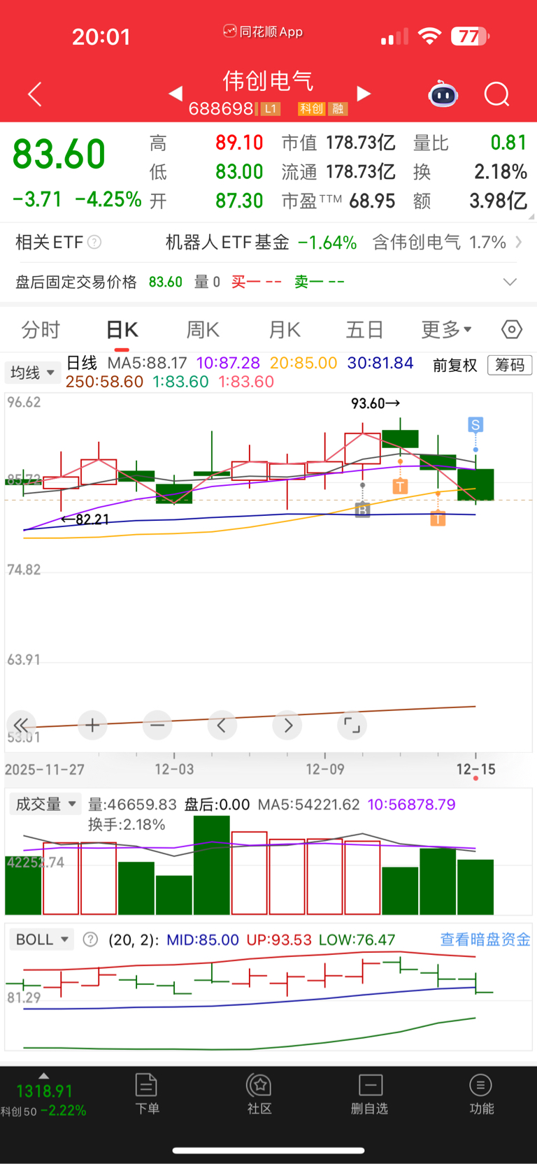 $伟创电气(SH688698)$ 买了3天就赚了1.2个点,真难受