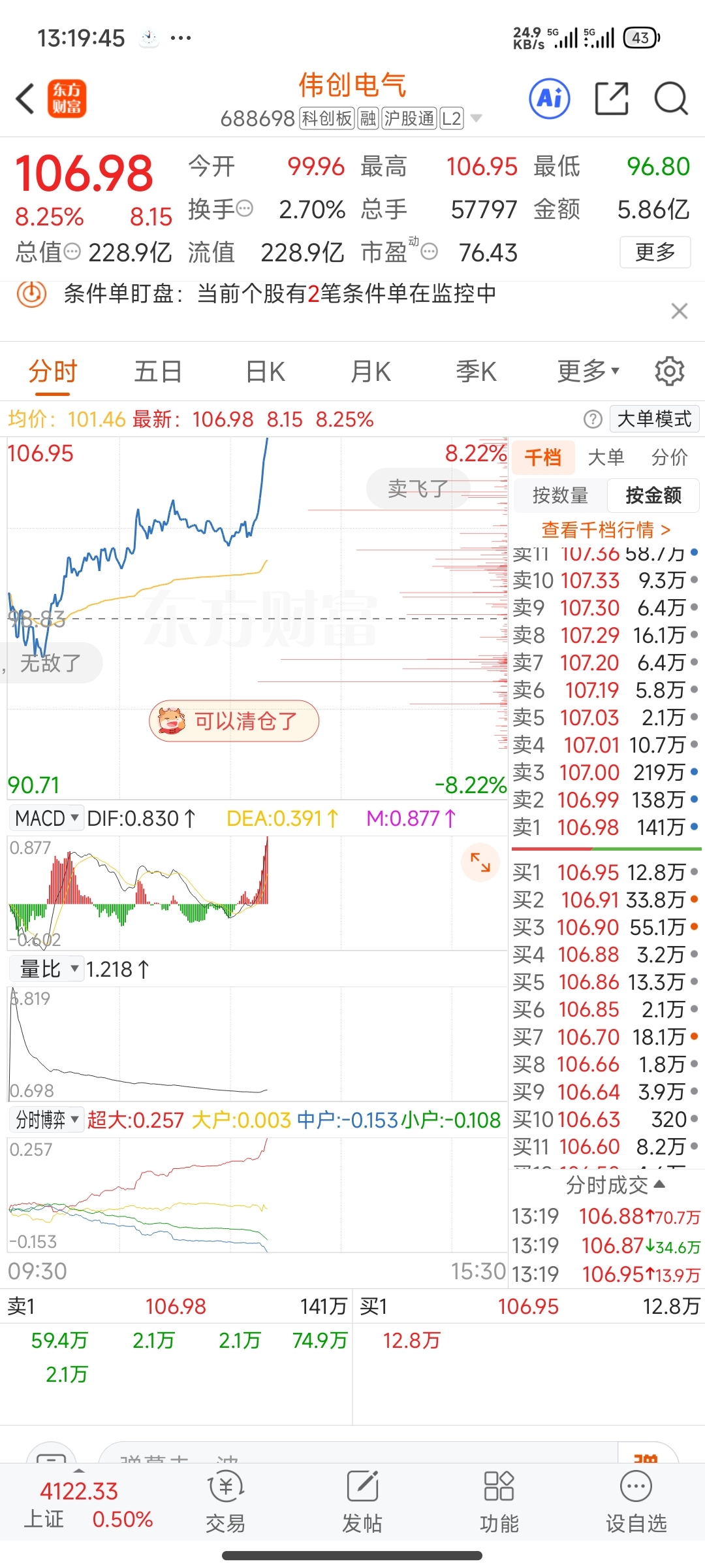 $伟创电气(SH688698)$ 叫跑不跑就是等收盘三个点