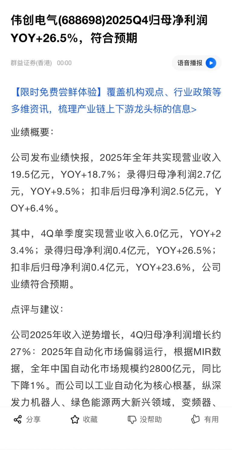 $伟创电气(SH688698)$