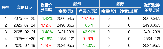卓锦股份:融资净买入10.19万元,融资余额2500.54万元(02-25)