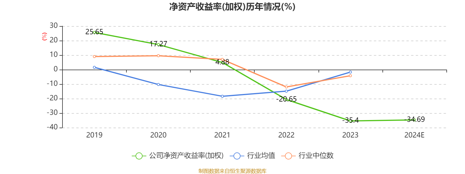 数据显示,2024年公司加权平均净资产收益率为-34.69%,较上年同期上升0.71个百分点。