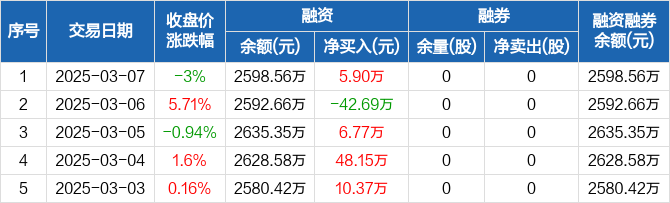 卓锦股份:融资净买入5.9万元,融资余额2598.56万元(03-07)