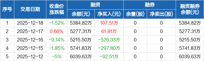 卓锦股份:融资净买入107.51万元,融资余额5384.82万元(12-18)