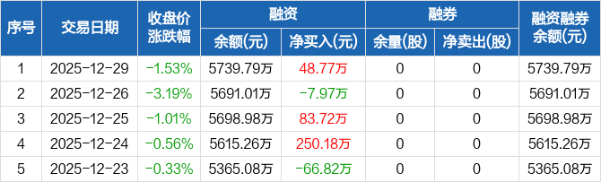 卓锦股份:融资净买入48.77万元,融资余额5739.79万元(12-29)
