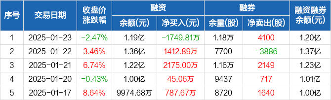 盛科通信:融资净偿还1749.81万元,融资余额1.19亿元(01-23)