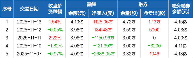 盛科通信:融资净买入1125.06万元,融资余额4.1亿元(11-13)