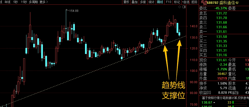 近期反弹趋势走得不错,这几天高位回落调整下来,重点观察脚底趋势线的支撑情况,能稳