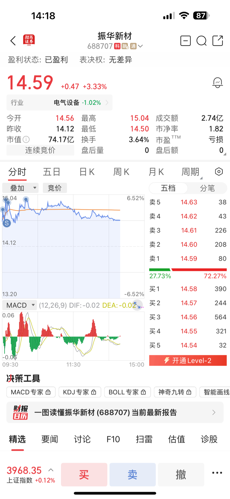 还是不够坚定,给自己一耳光,原计划14.65以上逐步卖出,结果想卖更高,撤单重新