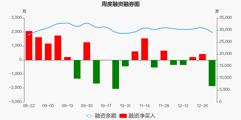 振华新材本周(2025/12/29-2025/12/31)累计跌幅达1.91%,截至12月31日最新股价报收13.85元。从增量上来看,12月29日至12月31日融资买入交易规模6996.12万元,融资偿还规模8857.53万元,期内融资净偿还1861.41万元。从存量上来看,截止1月4日,振华新材融资融券余额2.9亿元,其中融资余额规模2.9亿元,融券余额规模46.54万元。