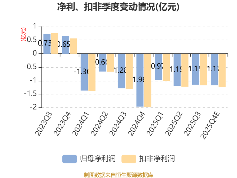 中证智能财讯振华新材(688707)1月9日晚间披露2025年度业绩预告,预计2025年归母净利润亏损4亿元至5亿元,上年同期亏损5.28亿元;扣非净利润亏损4.14亿元至5.14亿元,上年同期亏损5.34亿元。以最新收盘价计算,市净率(LF)约1.84倍,市销率(TTM)约4.79倍。