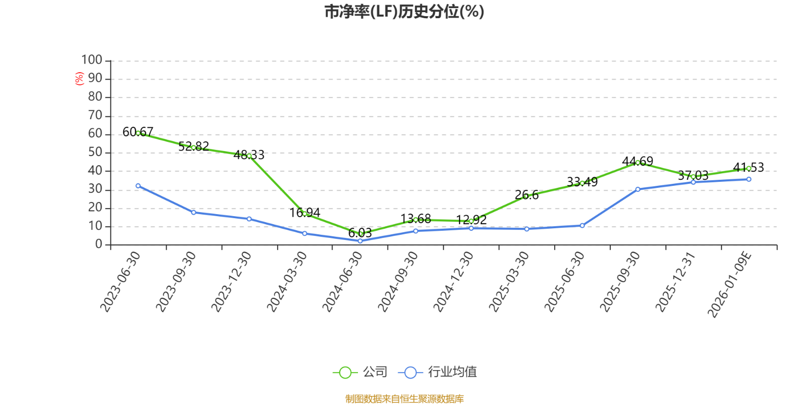市盈率、市净率为负时,不显示当期分位数,会导致折线图中断。