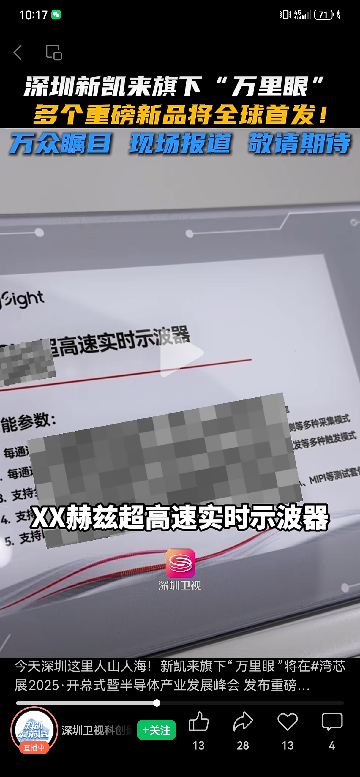 $成都华微(SH688709)$ 下午看新凯来万里眼公司的示波器发布会