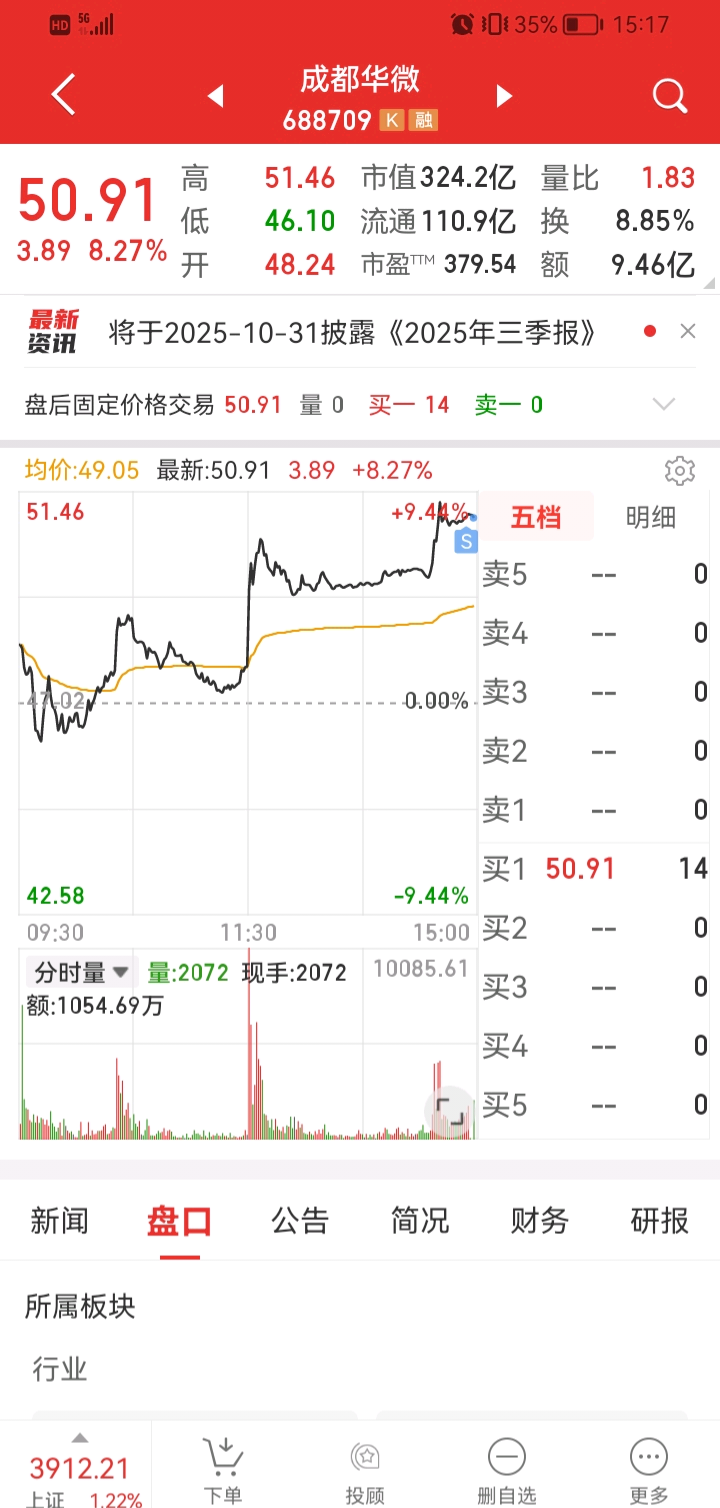 $成都华微(SH688709)$ $超捷股份(SZ301005)$ 成都华微清仓了,留下的发财,超捷股份减半仓,华微之前就像乌龟一样跟跌不跟涨受不了了,今天补涨就清了算了,超捷还可以今天比较强明天还有冲高动能明天抓一支半导体新龙头看看