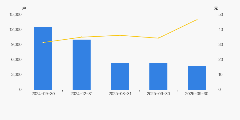 2024年9月30日至今,公司股东户数显著大幅下降,区间跌幅达61.49%。2024年9月30日至2025年9月30日区间股价上涨48.10%。
