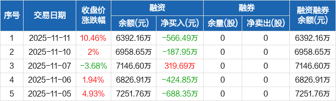 益诺思:融资净偿还566.49万元,融资余额6392.16万元(11-11)
