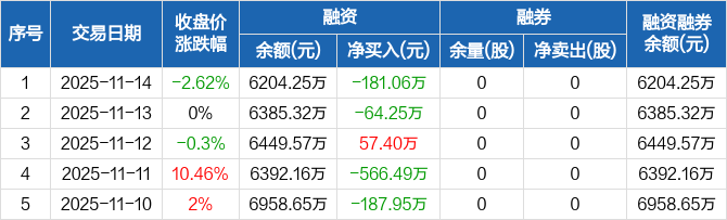 益诺思:融资净偿还181.06万元,融资余额6204.25万元(11-14)