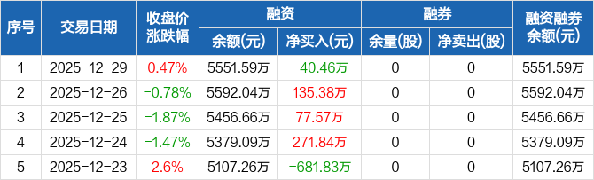 益诺思:融资净偿还40.46万元,融资余额5551.59万元(12-29)