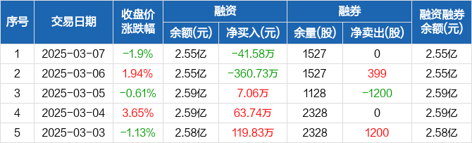 宏微科技:融资净偿还41.58万元,融资余额2.55亿元(03-07)