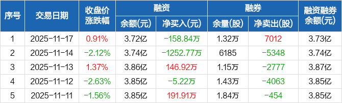 宏微科技:融资净偿还158.84万元,融资余额3.72亿元(11-17)