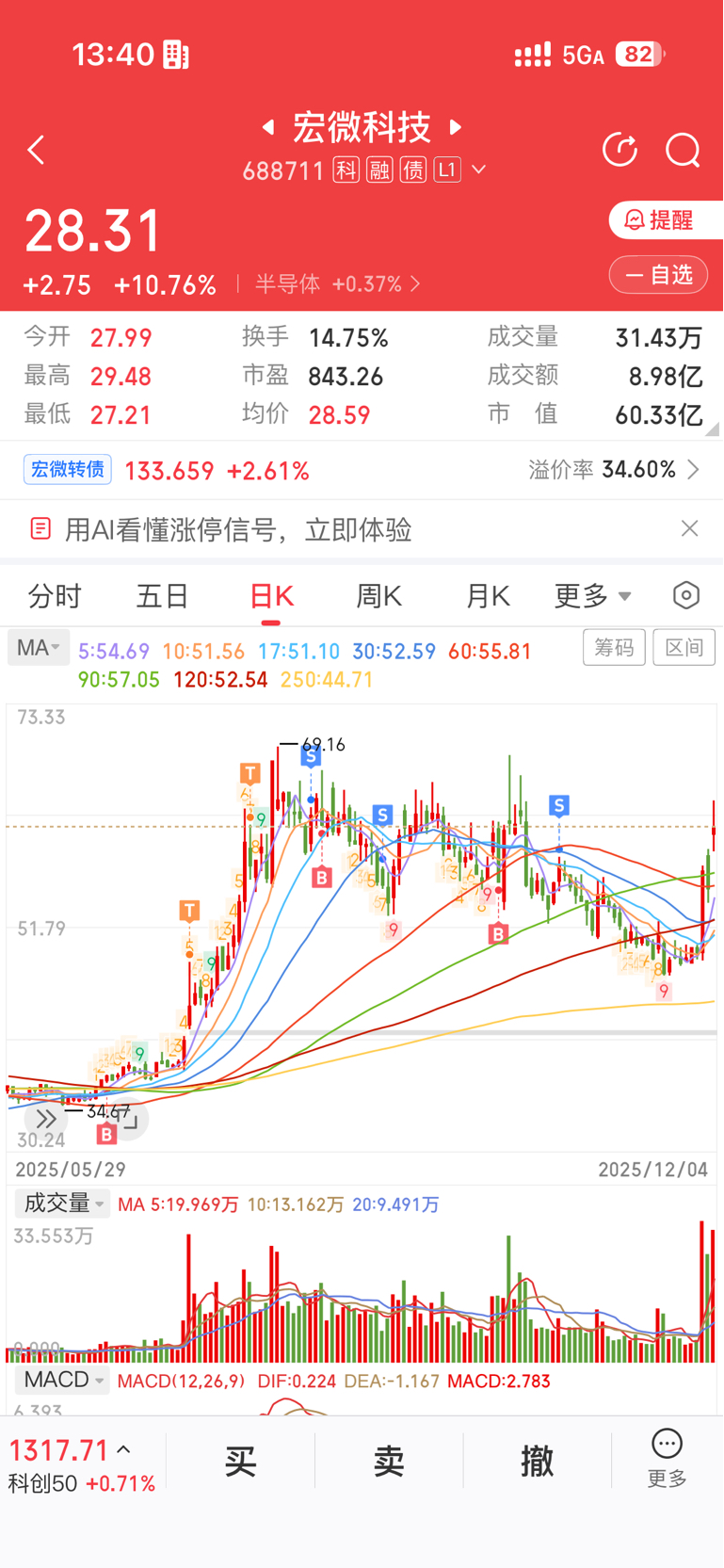 $宏微科技(SH688711)$ 放量突破趋势线上柜,还要涨,大盘的逆子