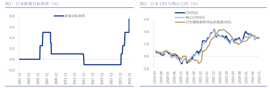 12月19日,日本央行将政策利率上调25个基点至0.75%,符合市场一致预期,利率水平升至约30年来高位,也是自2025年1月以来时隔11个月再次加息。我们判断日本央行仍可能继续加息,但整体节奏将明显偏慢,2026年更可能仅有一次。2026年美元兑日元将在150附近波动:一是日本高通胀带来的政治压力将促使当局抑制日元贬值,二是美日利差在2026年趋于收窄、叠加高市政府强调稳汇率与引导资金回流,共同限制了日元继续明显走弱的空间。