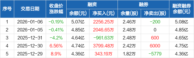 宏微科技:融资余额5.07亿元,创近一年新高(01-06)