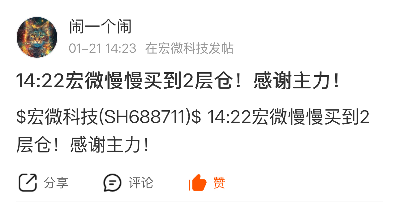 $宏微科技(SH688711)$ 开盘不错,感谢主力!与主力共进!目前持有3层仓