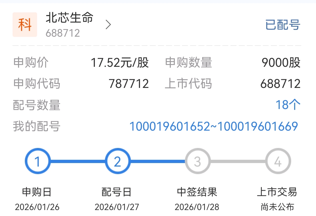 $北芯生命(SH688712)$ 一次也没中过,这次能不能不一样!来财来财来财!