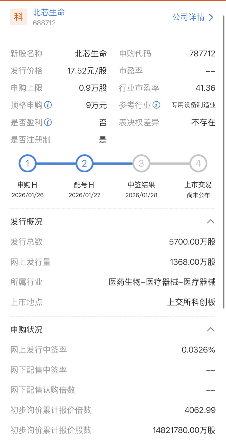 $北芯生命(SH688712)$ 这是中了吗 能赚多少啊