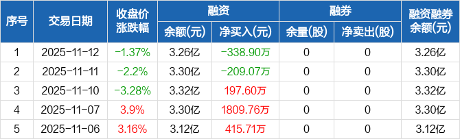 中研股份:融资净偿还338.9万元,融资余额3.26亿元(11-12)
