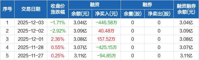 中研股份:融资净偿还446.58万元,融资余额3.04亿元(12-03)