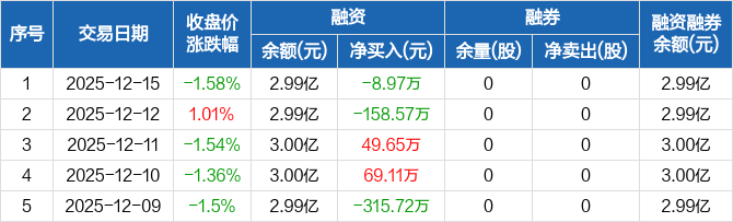 中研股份:融资净偿还8.97万元,融资余额2.99亿元(12-15)