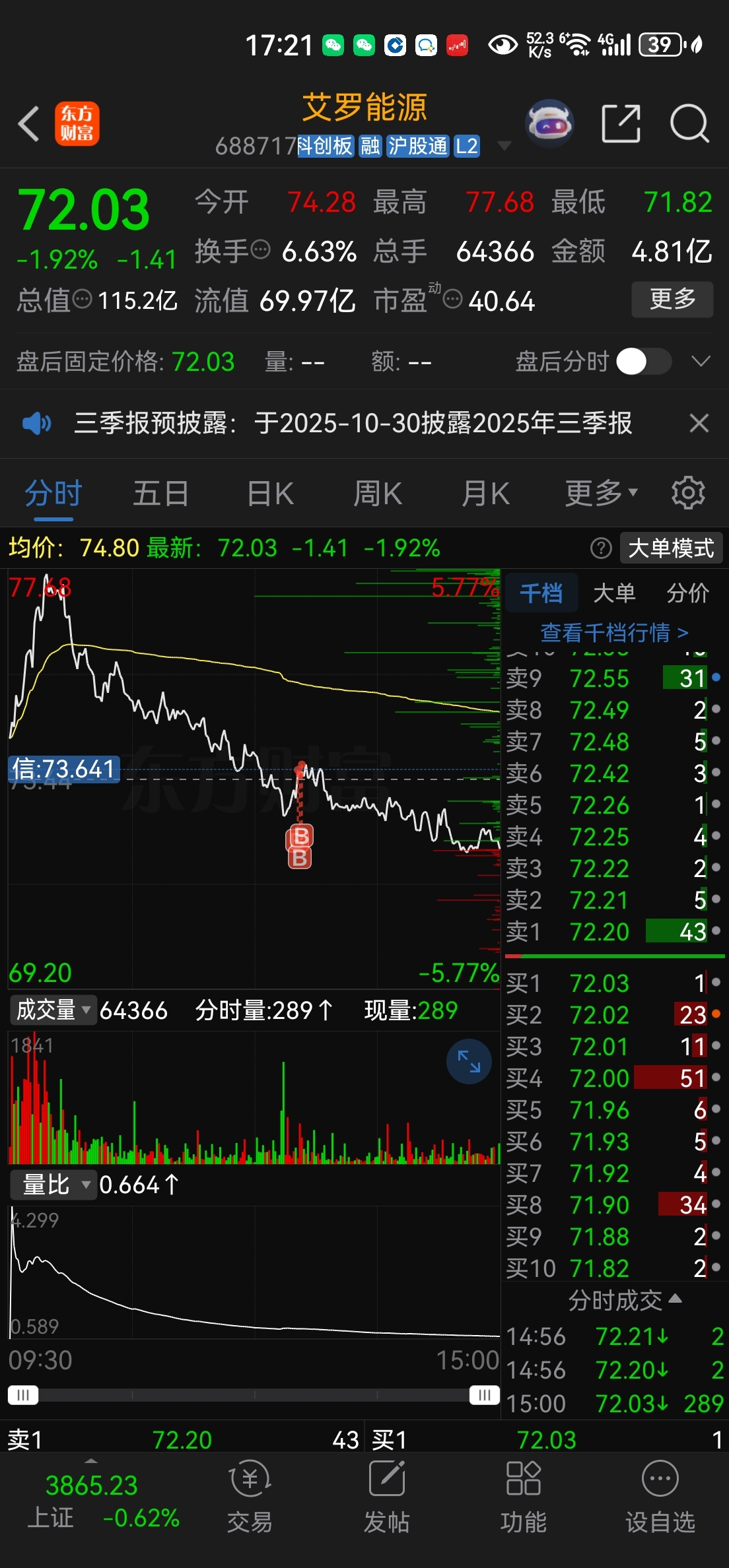 $艾罗能源(SH688717)$ 一个诱多,就把我坑进来了,今天同学给我的指示是冲高就跑,大盘有回调3750的需求,同学他们机构那边要洗盘拿筹码,这个月20日以后开仓。我上午接到电话后挺听话的,下午自作聪明,看到创业板回到3900立马杀进来了,没想到是个诱多。有时候就当自己是个xx就好,老老实实听话,