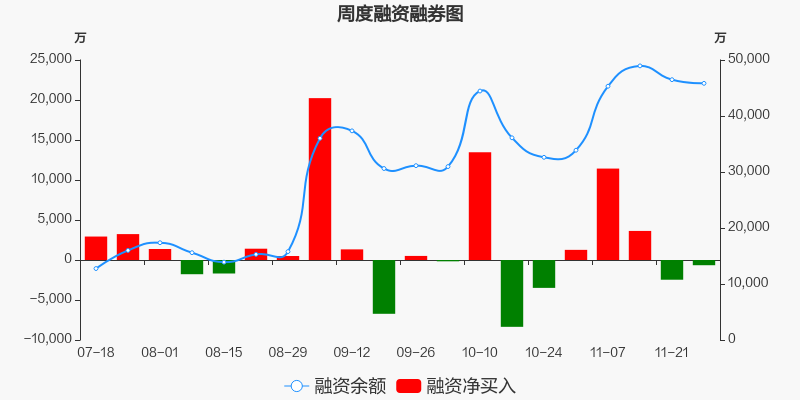 艾罗能源本周(2025/11/24-2025/11/28)累计涨幅达13.26%,截至11月28日最新股价报收69.10元。从增量上来看,11月24日至11月28日融资买入交易规模2.72亿元,融资偿还规模2.79亿元,期内融资净偿还653.13万元。从存量上来看,截止11月30日,艾罗能源融资融券余额4.59亿元,其中融资余额规模4.58亿元,融券余额规模78.37万元。