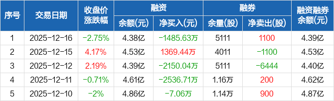 艾罗能源:融资净偿还1485.63万元,融资余额4.38亿元(12-16)
