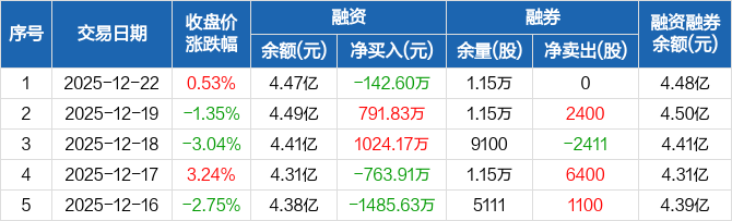 艾罗能源:融资净偿还142.6万元,融资余额4.47亿元(12-22)