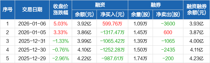 艾罗能源:融资净买入599.76万元,融资余额3.92亿元(01-06)