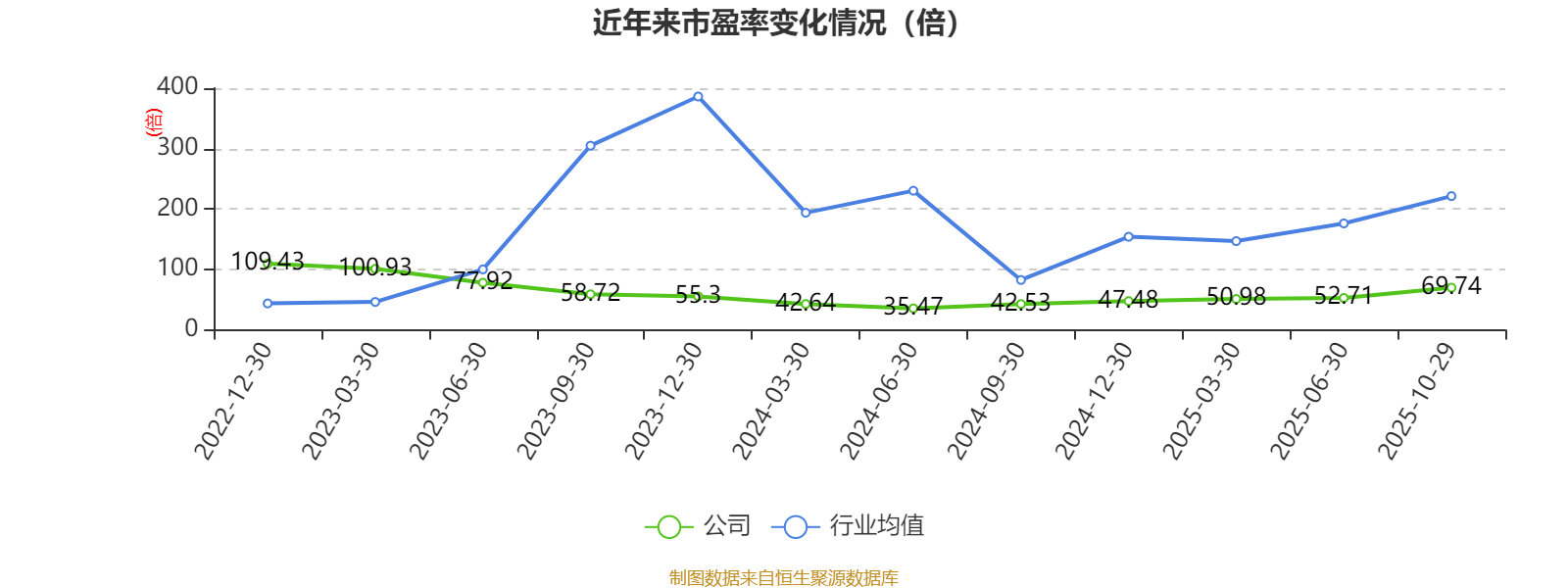 以10月29日收盘价计算,唯赛勃目前市盈率(TTM)约为69.74倍,市净率(LF)约3.21倍,市销率(TTM)约6.68倍。