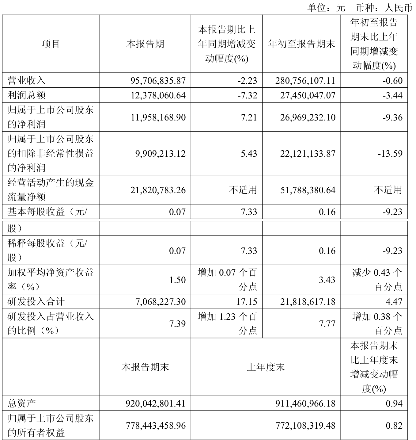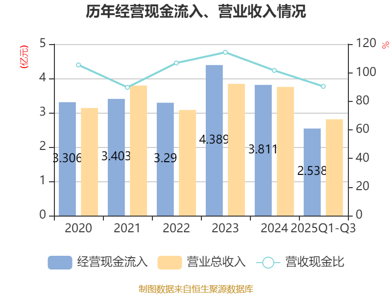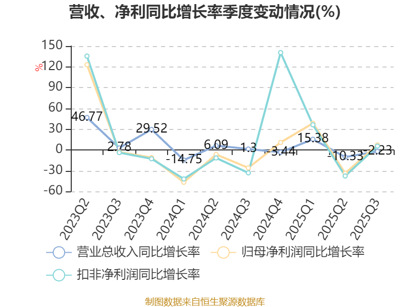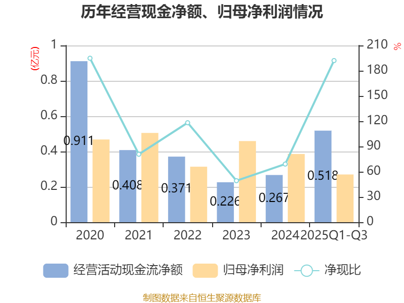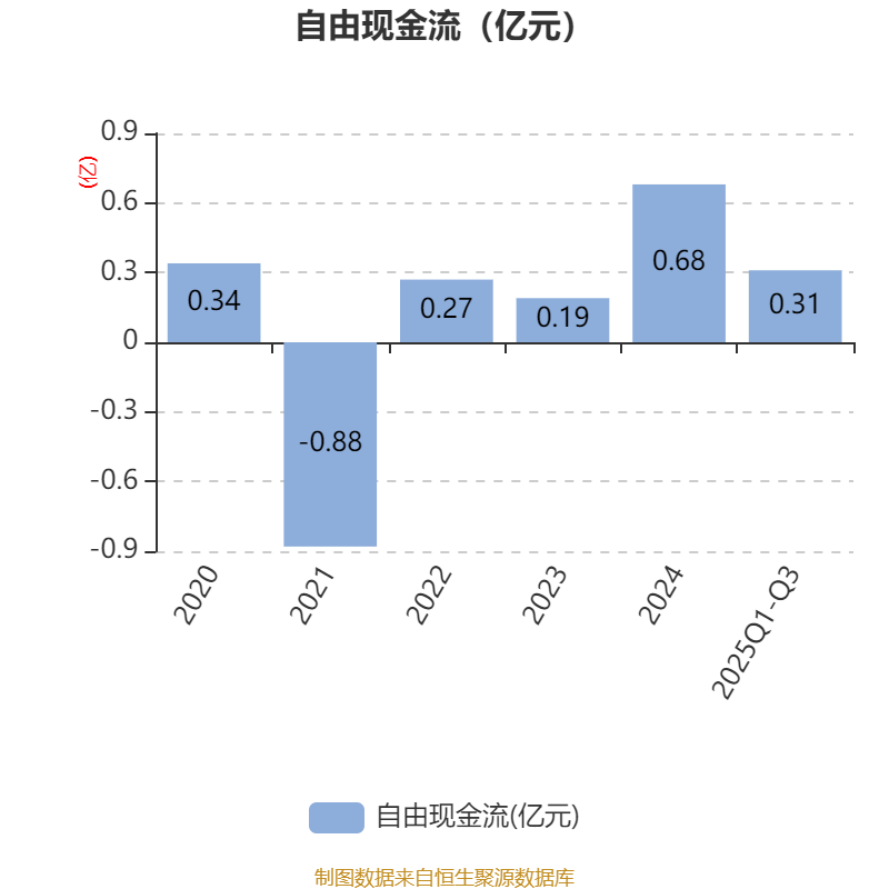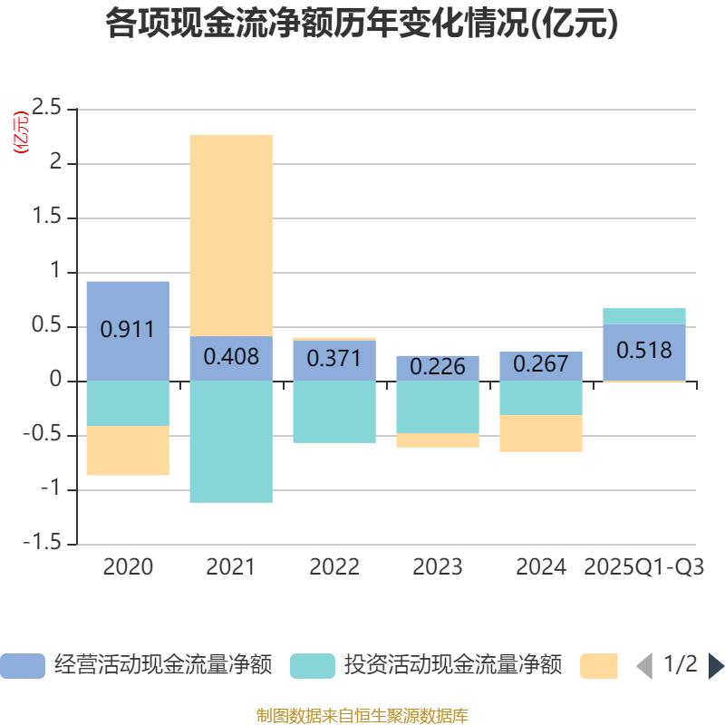 2025年前三季度,公司经营活动现金流净额为5178.84万元,同比增长185.84%;筹资活动现金流净额-163.23万元,同比增加2734.52万元;投资活动现金流净额1488.09万元,上年同期为-1210.87万元。