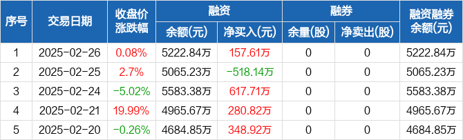 爱科赛博:融资净买入157.61万元,融资余额5222.84万元(02-26)